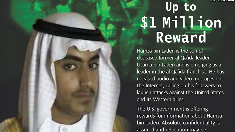 Sjedinjene Države su ponudile nagradu od milion dolara za informacije o tome gdje se nalazi jedan od sinova osnivača Al-Kaide, Osame bin Ladena –Hamza, koji je, u međuvremenu, postao lider islamističke militantne grupe.