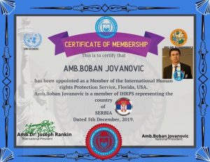Ono što je izuzetno važno danas, u Srbiji, ovde i sada, jste da među nama žive pojedinci čije ideje su nosioici poštovanjanja ljudskih prava i njihova institucionalna implementacija. Srbija je u svetu priznata i poštovana kao poštovalac Univerzalne deklaracije i kao država u kojoj se poštuje dostojanstvo čoveka. Nadnacionalna instanca međunarodnog karaktera u čijem središtu su ljudska prava- Međunarodna organizacija za zaštitu ljudskih prava je našoj državi odala veliko priznanje imenujući ambasadora Bobana Jovanovića za predsednika ove organizacije u Srbiji. Zasluge ovog čoveka u sferi ljudskih prava i humanitarnog rada prepoznate su u svetu. Ovom prilikom, a povodom Međunarodnog Dana ljudskih prava gospodin Jovanović je za Balkanska rekao sledeće: