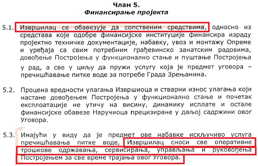 Iznos koji gradska vlast namerava da uplati konzorcijumu koji gradi “fabriku vode” premašuje 50% ukupnog kapitala tog konzorcijuma, a uplata je protivna ugovoru koji je zaključen 2015. godine, po kome isključivo investitor snosi troškove izgradnje i servisiranja postrojenja, a grad preko svog javno-komunalnog preduzeća plaća samo uslugu prečišćavanja vode.