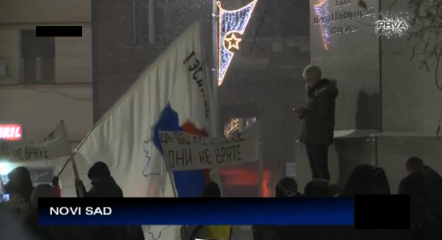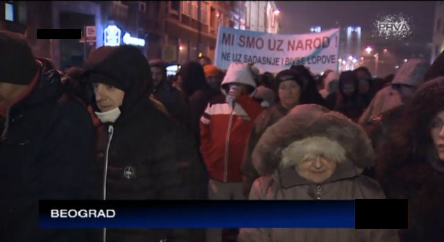 „Laž nije drugo mišljenje“, čulo se sa kamiona uz povike „Nije srpski ćutati“ što je naziv emisije koju je nekada vodio i uređivao Dragan Bujošević. Ispred RTS upaljene su baklje i raširen je transparent „Počelo je“, a puštani su špica za Dnevnik i delovi govora Aleksandra Vučića kao i najave spikera o Vučićevim aktivnostima. Kao i prethodne subote u Takovskoj ulici učesnike protesta dočekao je velik transparent „Dosovski režim oslobodio je 2.000 albanskih terorista, a srpske generale prodali Hagu“.