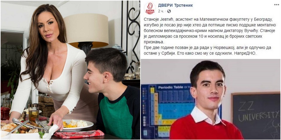 Naime, na Fejsbuk profilu odbora Dveri u Trsteniku objavljena je fotografija sa momkom za kojeg stoji da se zove Stanoje Jevtić, da je asistenet na Matematičkom fakultetu u Beogradu, da je diplomirao sa prosečnom ocenom 10, ali i da je ostao bez posla jer nije hteo da potpiše pismo podrške predsedniku Srbije Aleksandru Vučiću.