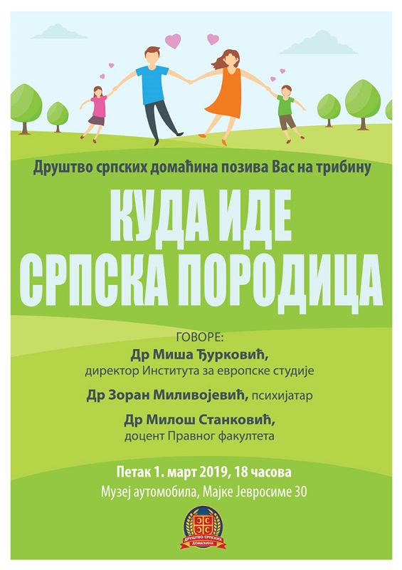 1. marta u Muzeju automobila, u organizaciji Društva srpskih domaćina, održana je tribina pod nazivom „Кuda ide srpska porodica“.