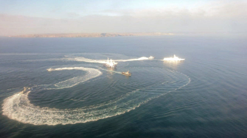 Kijev nije podneo zahtev za prolazak brodova u Kerčkom moreuzu, a plovila nisu uključena u raspored prolazaka. Brodovi opasno manevrišu i ne poštuju zakonske zahteve ruskih vlasti.