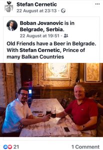 Želim da budem prijatelj i sa zvaničnom Srbijom i da svoje resurse i kapacitete stavim na raspolaganje, jer kao što vidite sve češće sam u Beogradu koji je neformalna prestonica Balkana u kulturološkom smislu. Živim na relaciji Beograd – Atina jer je moja supruga, Princeza Karula iz Atine.