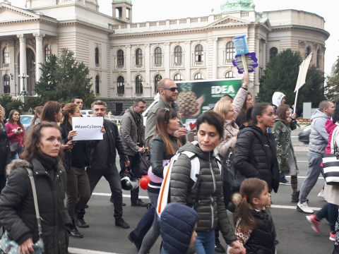 „Ovo je protest protiv diskriminatorskih i ponižavajućih planova jednog zakona, koji smo dugo čekali i koji je najavljivan kao spas za populacionu politiku Srbije“, kazala je ona i dodala da odredbe Zakona o finansijskoj podršci porodicama sa decom diskriminišu žene.