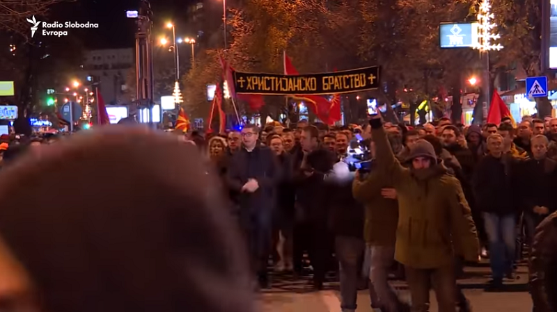 Na skupu ispred Vlade Makedonije, lider VMRO DPMNE Hristijan Mickoski je poručio hiljadama pristalica da predstoji „duga i teška bitka“ i žestoko napao rad vlade Zorana Zaeva, nazivajući je „nesposobnom i kriminalnom“.