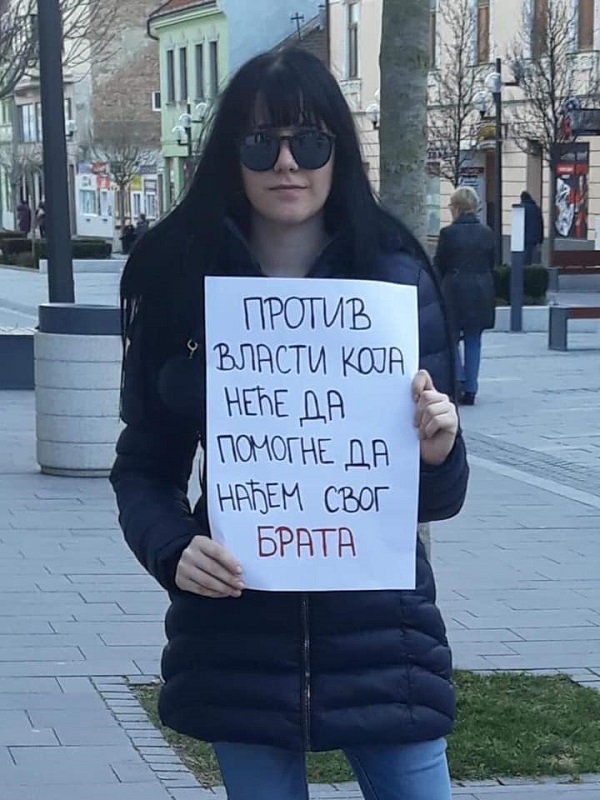 Održavani su razni protesti. Gde god se pojavim svi me pitaju otkud ti tako mlada, kog tražiš… Kada me pitaju bojiš li se da se i tebi tako nešto ne dogodi, odgovorim im “NEMAM JA STRAHOVA, JA SAMO MOG BRATA TRAZIM i nema odustajanja dok moja mama ne zagrli svog sina a ja svog rođenog brata!”